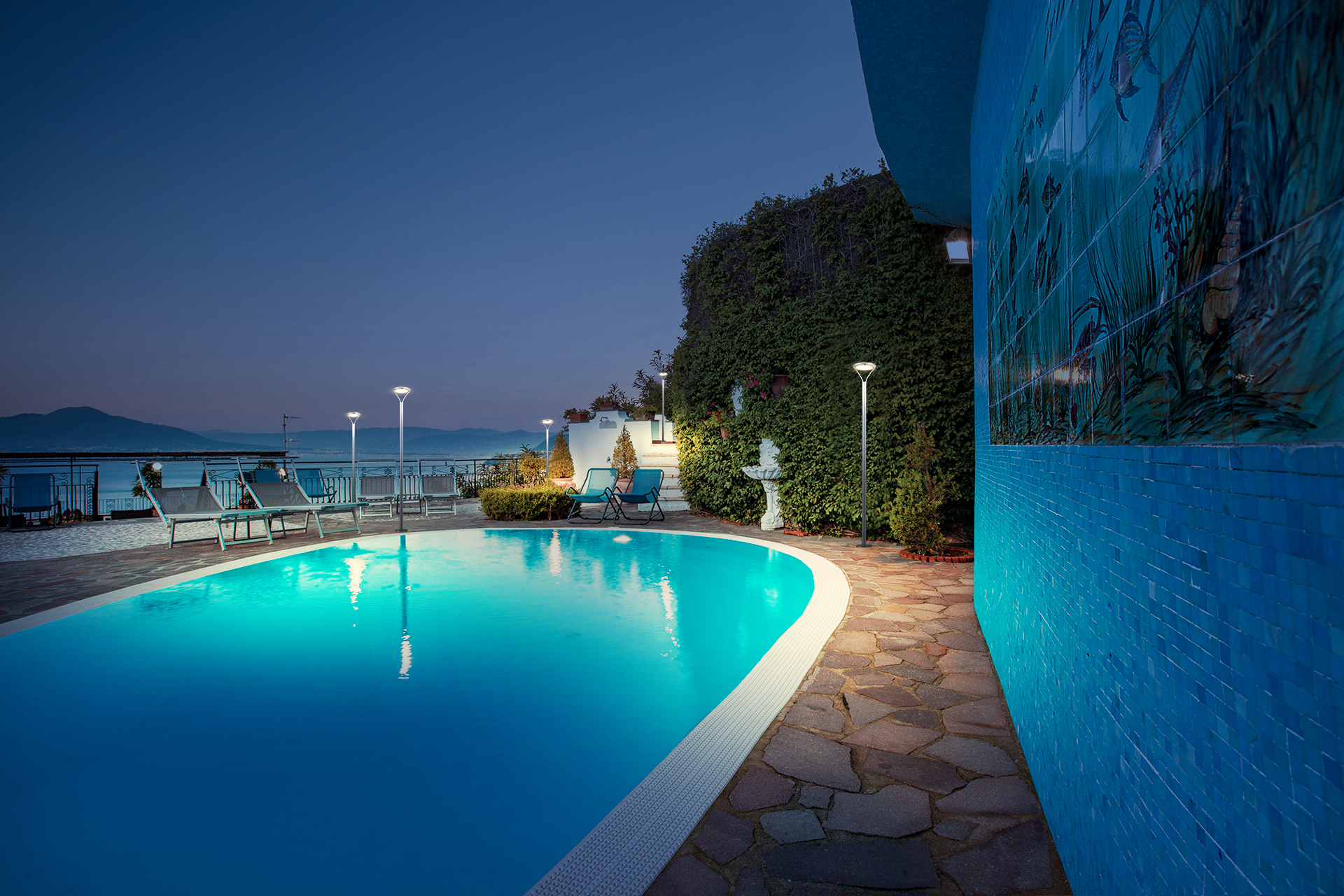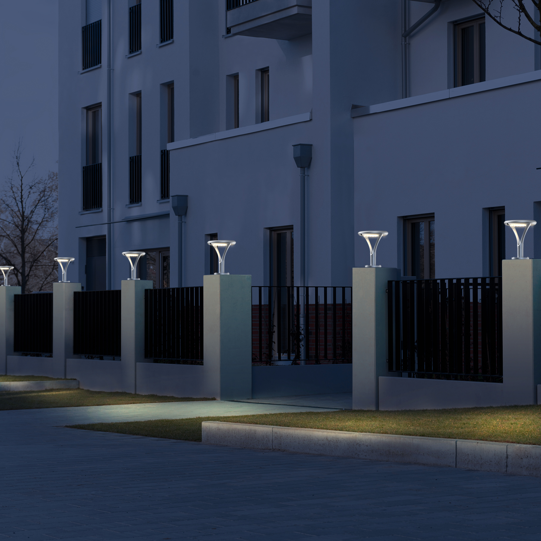 Sensors: Dusk-to-dawn sensors automatically control the lights.