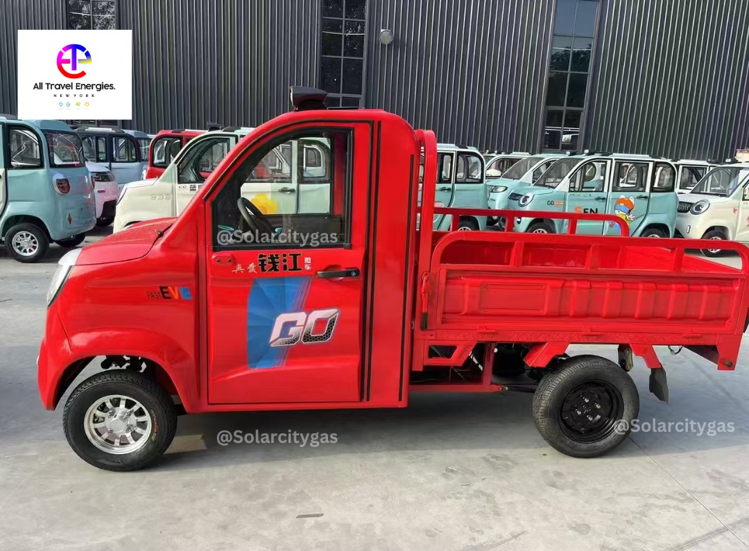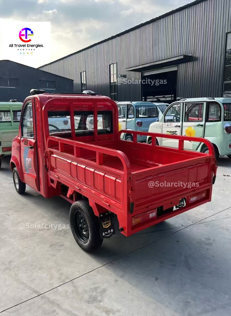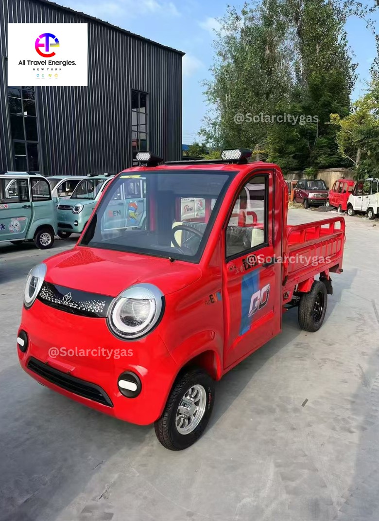 Size: 2600x1220x1650mm, Body: independent suspension, brake structure: disc brake, drive motor: 1000w, 48-60v. Equipped with five doors, independent suspension shock absorption, hand glass, reversing image, warm air, high roof roof fan, children’s lock buzzer flasher, double headrest folding seat, rear seat can be retractable, luggage rack with spotlights, front and rear bumpers, tire size 400-10, maximum speed 30-45km/h